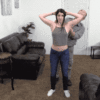 Arielle Lane and Autumn Borrelli break into a house but don’t realize it’s a sting. A detective commands them to put their hands up and interlace their fingers before getting on their knees. They are directed to cross their legs at the ankles and he handcuffs their wrists in front and adding a third pair to tether them together. He guides them to the wall and has them put their hands up high for a frisking. He checks their hair and gropes their bodies but isn’t interested in their sexual offers. They are surprised he takes their money and offer more be he’s putting it in evidence and can’t be bought. Their tight jeans don’t hide anything but his hands check every inch.