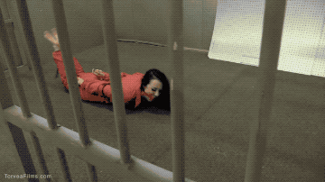 Dakota has been convicted of a serious crime. She is tied up on the floor in her cell laughing through her red ball gag. The guard (Scott Torvea) and priest (Arielle Lane) come in they stand her up. Scott tells her that she needs to cooperate or they will make it tough on her. In response, Dakota tells him to fuck off and spits at him. They re gag her and drag her off.