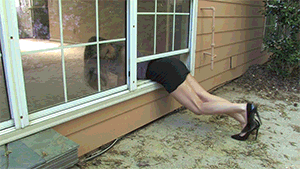 As he goes to leave she begs him to stay. Tells him that he can borrow her car for 2 hours if he helps her get out. He says no. Scott tells her if she gets out she will change her mind and not let him borrow the car. Instead he decides to grab his phone and take some embarrassing photos of her. Bent over with her yoga pants down around her knees. Jacquelyn is embarrassed and begs for him to stop.